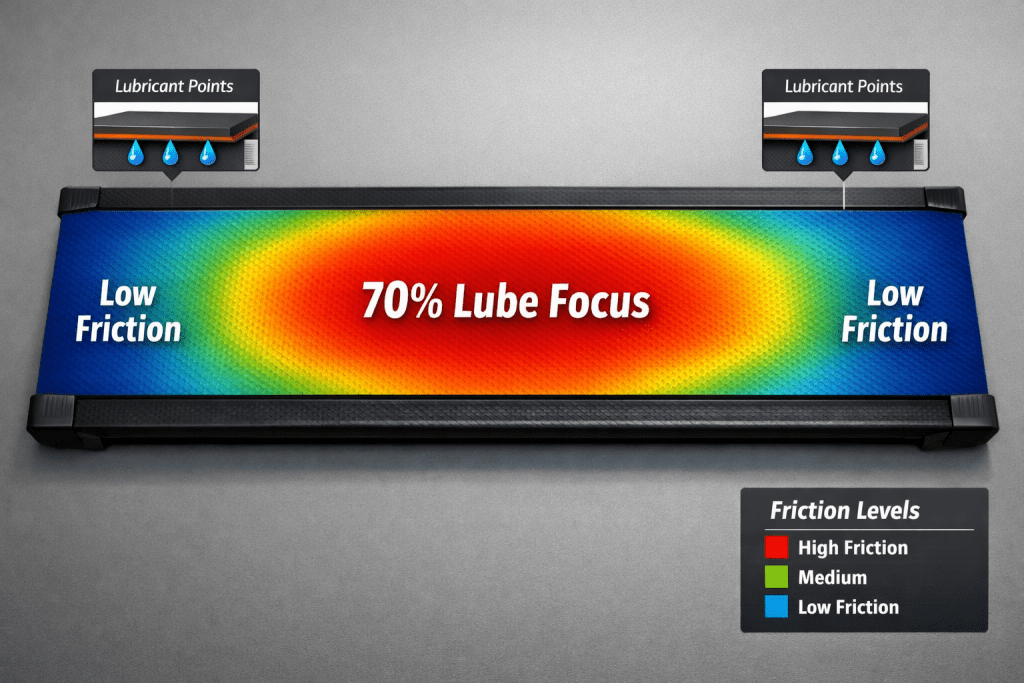 Focus application in the right spot. Allocate 70% of the lubricant to the center 50% of the belt. That’s where the action happens. The edges? They’re under less load and barely need any. Overdoing those areas is just wasted effort.